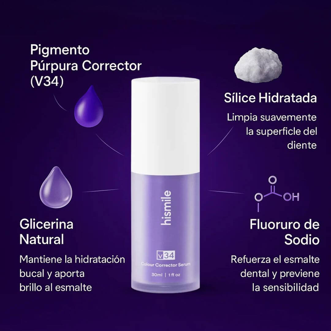 Ayuda a disminuir visualmente el amarillo que estos productos dejan en el esmalte, y la sílice hidratada limpia suavemente la superficie del diente sin dañarlo.
