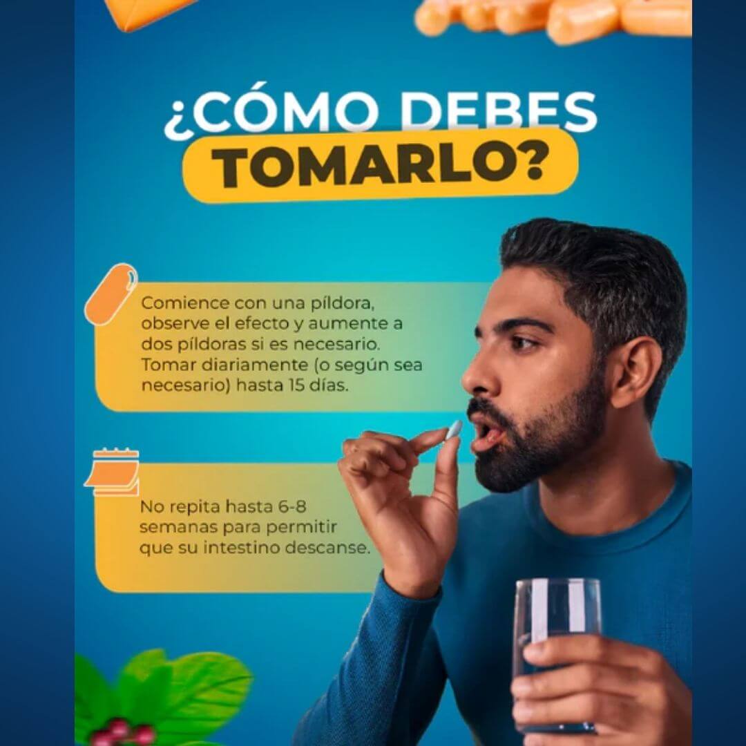 Se recomienda tomar 1 cápsula al día para una limpieza suave. Si buscas resultados más rápidos, puedes tomar hasta 2 cápsulas al día, siempre con suficiente agua.
