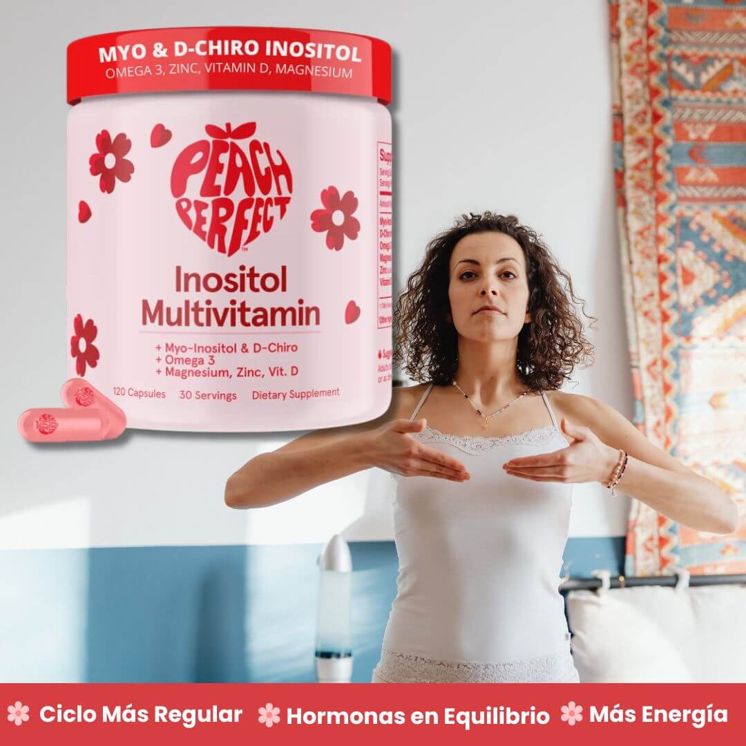 Tu cuerpo no está fallando: solo está pidiendo equilibrio hormonal. Peach Perfect Inositol Multivitamin te ayuda a recuperar tu energía, regular tu ciclo y volver a sentirte tú misma desde adentro — de manera natural y sin hormonas